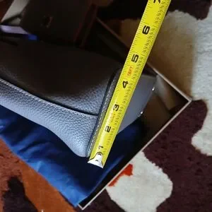 Size is large and this tote holds lots!!! Color is elephant π and British tan β¨οΈ π π The neutral shades go with lots!!!π Interior is radiant red, with lots of pockets and a keychain attached.ππ