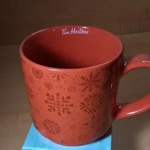 Tim Hortons Holiday Christmas Snowflakes 2021 Red Ceramic Coffee Cup Mug