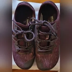 Merrell Vapor Glove 5 barefoot shoe. Lightly worn, in good condition. Burgundy color, size 9.5.