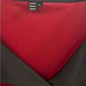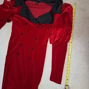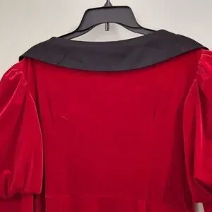 SHEIN Modely Puff Long Sleeve Velour Midi Red Dress w/Satiny Black Collar, Sz XL