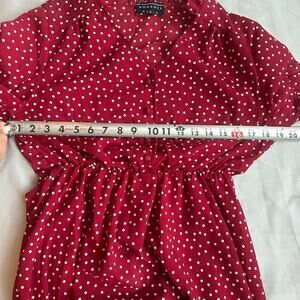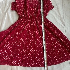 Womance Red/White Polka Dot, Quarter Button Down Short Sleeve Shirt Dress- M