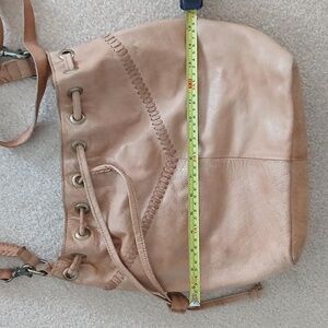 This beautiful Day & Mood shoulder bag is the perfect addition to any outfit. The drawstring closure adds a unique touch to the bag, while the medium size makes it versatile for any occasion. The exterior is made of high-quality leather in a gorgeous tan color, complemented by a black lining. The bag features a single leather handle/strap for easy carrying. The brand Day & Mood is known for their stylish and durable bags, and this one is no exception. It is part of their Day & Mood product line, which is known for its exceptional quality. This bag is ideal for women who are looking for a medium-sized shoulder bag that can match any outfit.