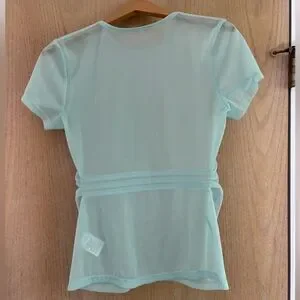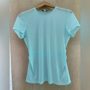 Tibi Aqua /mint green Sheer Short Sleeve Top