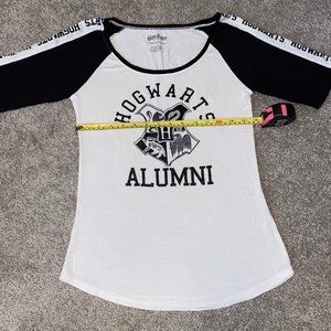 Harry Potter Hogwarts Women's White and Black Half Sleeve Tee Shirt Top Size S