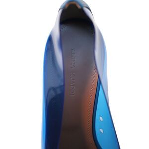 Delivery Duty Paid included – Amina Muaddi Ane's Glass Wedge Pumps in Blue PVC are the epitome of glamour. The high wedge heel adds the perfect amount of edge to this classic shoe. This style features lustrous materials and pointed toe, giving you an ultra-modern look for any occasion.