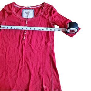 Y2k Abercrombie & Fitch Red 1/4 Sleeve Fitted Henley Top - Size Large