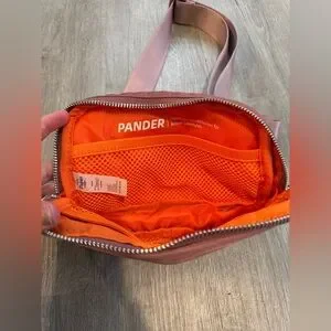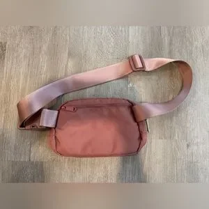 Super cute belt bag! Has a beautiful mauve pink color on the outside and unique orange colored lining on the inside. Roomy inner pocket that you can fit a lot into and a second outside pocket that is perfect for cards, keys, or lip balm. Has a nice strap that you can make longer or shorter to fit you comfortably. Same quality as some luxury brands. No known flaws, I just have too many. Never used this bag and need the space.