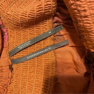 Floral Anthropologie midi smocked dress with puffed sleeves