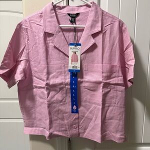 Buffalo David Bitton Blush Pink Button Down Linen Lightweight Sz Large Top
