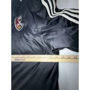 The Adidas Stadium Parka is a black jacket designed for soccer fans, specifically those who support Major League Soccer (MLS) and the St. Mary's School Soccer Center of Excellence. With the Adidas brand known for quality sports apparel, this jacket is a stylish and practical choice for showing off team pride while staying comfortable during outdoor activities. The medium size ensures a comfortable fit for most fans, making it a great addition to any soccer memorabilia collection.