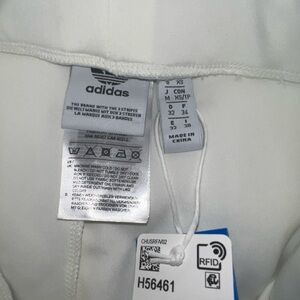 Adidas Women's Athletic Shorts in White with Dark Green Stripes