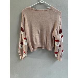 Santa sweater sz M bubble sleeves ugly Christmas holiday Pink Cozy Winter