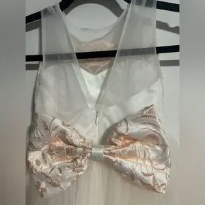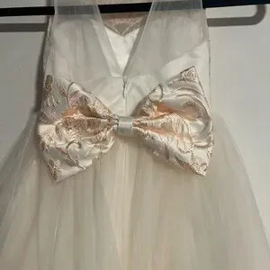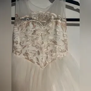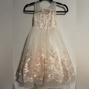 Stunning cream gown with gold floral embroidery. Perfect for special occasions. The dress has no stains on perfect condition