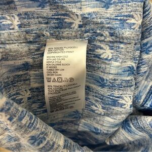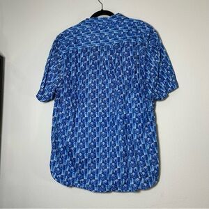 Casual button-down shirt with a blue palm tree pattern. Ideal for relaxed boating outings. No visible flaws! Open to offers!