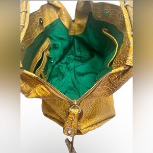 Jessica Simpson Yellow Crocodile-Embossed Signature XL Tote with Emerald Lining
