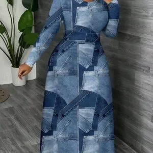 Elevate your wardrobe with this stylish blue patchwork maxi dress. Perfect for any occasion, this dress combines comfort and fashion effortlessly.
