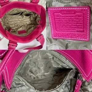 Y2K Vintage Coach Hot Pink Pebble Leather Tote Bag & Strawberry Charm Chain SET