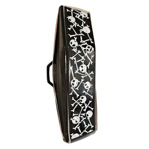 Keywords: Disney, Nightmare Before Christmas, Baking Dish, Casserole Dish, Lid, Jack Skellington, Sally, Halloween, Coffin Shaped, Ceramic Bakeware, Gothic Kitchen Decor, Skull and Crossbones, Collectable, Novelty Baking Dish, Disney Kitchen