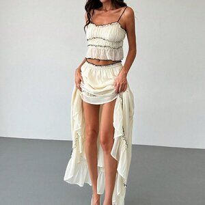 Apricot Casual Women's Vacation Contrast Trim Layered Camisole Top & Skirt