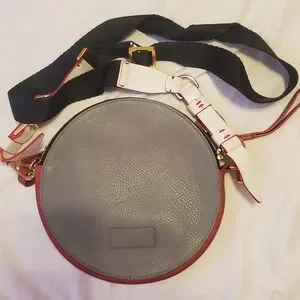 Sophisticated crossbody bag by Vionnet. Features a sleek gray body with striking red accents. Ideal for versatile styling.