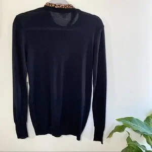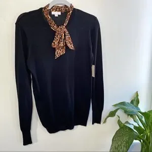 14th & Union Black sweater with cheetah bow tie
