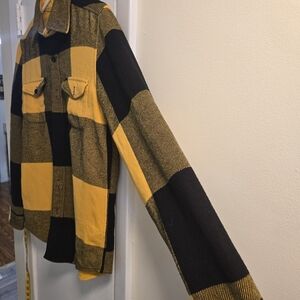 American Eagle Outfitters Yellow and Black Large Block Plaid Shirt Classic Fit.