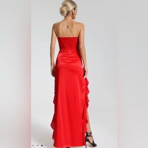 Strapless Flounced Maxi Dress Turn heads with this stunning red strapless dress. Perfect for any special occasion.
