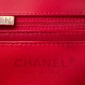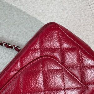 The compact size and vibrant red color make it a chic choice for both day and evening wear, adding a touch of elegance to any outfit. Structured yet lightweight, it balances timeless Chanel style with practicality for daily use. The bag has been professionally color changed from white to red. Condition is good overall with minor corner rubbing and natural creasing, hardware remains shiny with light wear. The serial sticker is lost but the bag comes with its original card.