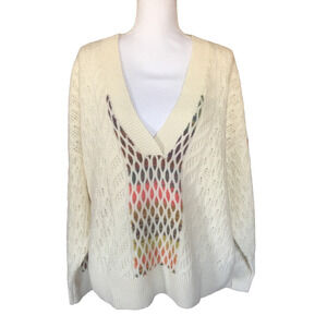 Anthropologie Maeve V-Neck Cable-Knit Lamb's Wool Sweater Women’s Size XL Ivory