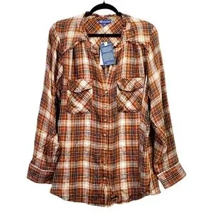 Democracy Size 1X- NWT Brown Plaid Button-Up Shirt