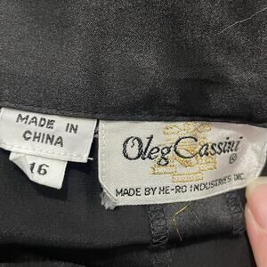 Oleg Cassini Skirt Size 16 Black Silk Maxi Long Formal Side Zip Slit Vintage 80s