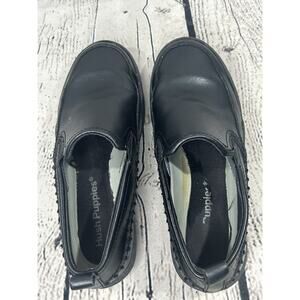Hush Puppies Shoes Boys Size 2M Leather Big Kid Lazy Genius Loafer Slip-On Black EUC