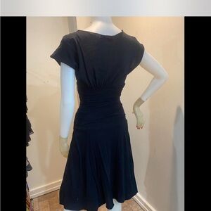 Chic black midi dress called Ella Dress by Velvet. Features a stylish V-neck and cap sleeves. Perfect for versatile wear. Original price is $198 on site.