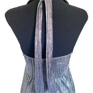 Silver Metallic Pleated Halter Top Maxi Dress Women’s Size Medium Gunmetal