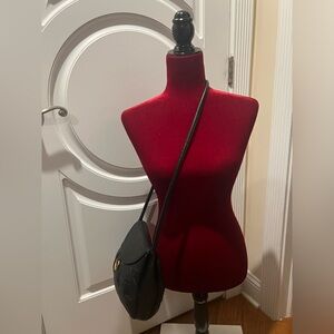 Vintage Loewe Black Leather Shoulder Bag with Embossed Anagram & Gold Ring