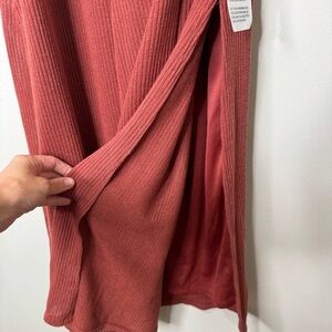 NWT Topshop Brick Red Ribbed Knit Belted High Neck Side Slit Midi Dress Size 0-2