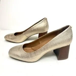 Giani Bernini Gold Memory Foam Block Heel Pumps size 6.5