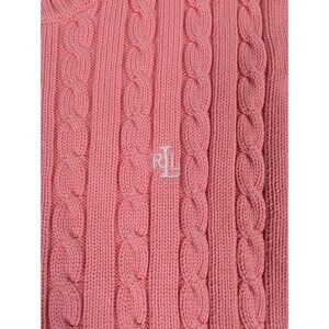 The product is a vintage Lauren Ralph Lauren women's Lauren Ralph Lauren vintage made in Hong Kong size small small Cable Knit Sweater in pink coral. Made from 100% cotton and featuring a classic crew neck and long sleeves, this sweater is perfect for the winter, fall, and spring seasons. The cable-knit fabric adds a touch of texture while the pullover style makes it easy to wear. Measures approximately 19.5" down and 18.85" across. It runs a little small and may be shrunk from prior washing or the size itself. If possible compare measurements with your own clothing.Pre owned in good condition. For more details please study all pictures.