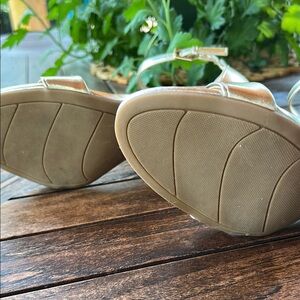 These Nine West gold high heel pumps are a stunning choice for formal occasions. With their sleek design and shimmering gold finish, they add a touch of elegance to any outfit. The classic silhouette and comfortable heel height make them a versatile addition to your shoe collection.