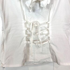 Boston Proper women’s Blouse Vintage Top Sz 10 White Ruffle Neck Button Lace Up Corset back medium