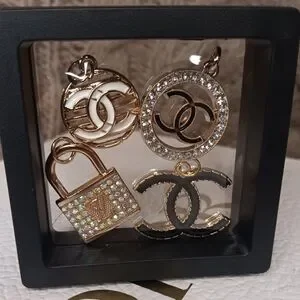 This elegant charm set features a stunning combination of gold and black tones, perfect for adding a touch of sophistication to any outfit. The intricate design and sparkling accents make it a must-have accessory.