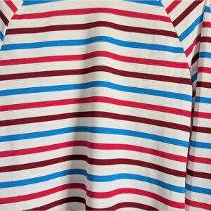 Spanx Swim Shirt Rash Guard M Ocean Stripe Hibiscus Red Blue White Beach UPF