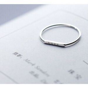 NEW Women's Dainty White Gold-Plated S925 LOVE Bar Band Ring Size 5