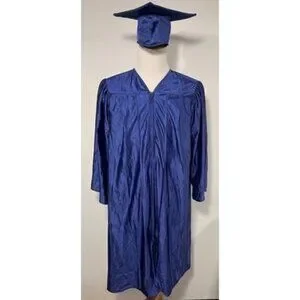 Graduation Source Cap And Gown Royal Blue Kids Size 45 5’ Ft - 5’ 2” Zip Up