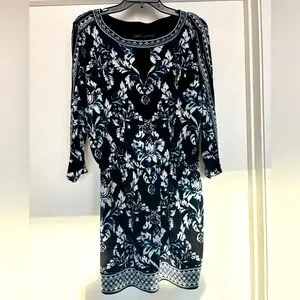 White House Black Market (WHBM) Navy, Blue, and White Floral Dress / Tunic
