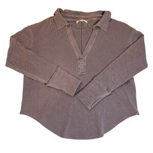 We The Free Distressed V-Neck Collared Waffle Top Heathered Purple Size Large