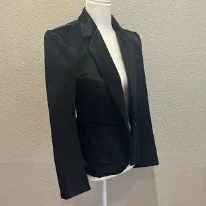 This sleek black blazer is perfect for any occasion. Its tailored fit and classic design make it a versatile addition to your wardrobe.