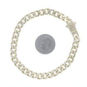 Yellow Gold Cubic Zirconias Curb Chain Men's Bracelet 7" 14k Round .25ctw