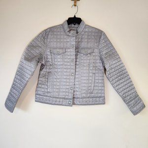 Gap Quilted Silver Unlined LS Jean Jacket Large
