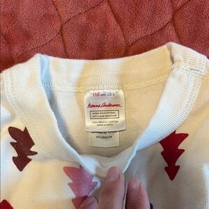 Charming pajama set with colorful tree design. Soft and comfortable for kids. Gently worn for Christmas photos.